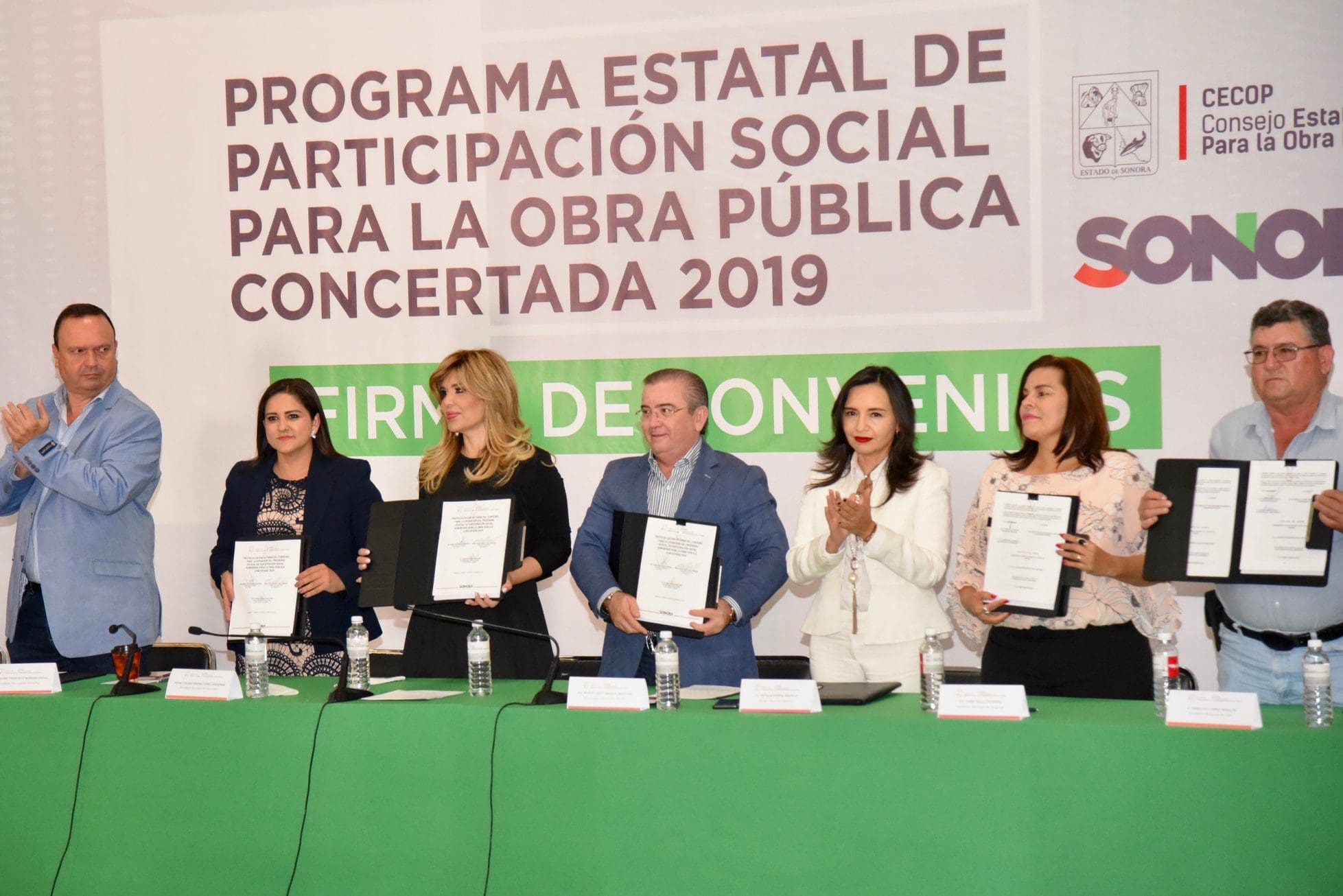 La Gobernadora Claudia Pavlovich Arellano, refrendo a los alcaldes su apoyo y respaldo, junto al titular del Consejo Estatal de Concertación Para la Obra Publica (CECOP), el Ing. Manuel Jesús Bustamante Sandoval.