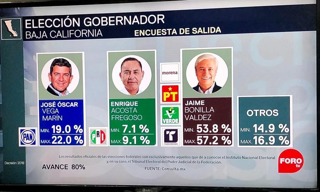Jaime Bonilla Valdez, candidato a la gubernatura de la coalición Juntos Haremos Historia en Baja California (Morena, PT y PVEM) sería el ganador en las elecciones estatales celebradas este domingo.
