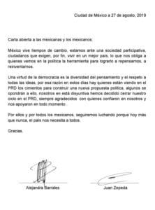 Alejandra Barrales y juan Zepeda, ambos integrantes del PRD,anunciaron su renuncia al partido.