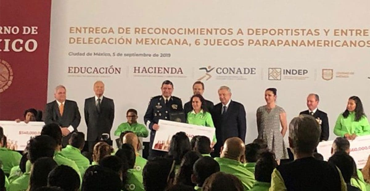 El presidente Andrés Manuel López Obrador entregó reconocimientos a 184 deportistas y 46 entrenadores que participaron en los VI Juegos Parapanamericanos en Lima, Perú, 2019.