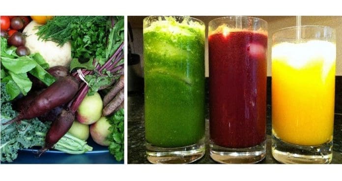 Jugo verde con betabel y zanahoria