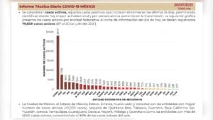 Al presentar su informe técnico diario sobre el avance del COVID-19 en México, la Secretaría de Salud informó que 18 estados concentran el 90% de los casos activos del país.