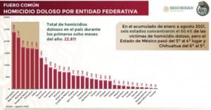 “Tenemos una incidencia delictiva, en este periodo de diciembre de 2018 a diciembre de 2021, de la Administración Federal, que el estado ocupa el séptimo lugar en homicidios doloso”, reveló en su conferencia mañanera desde Sonora.