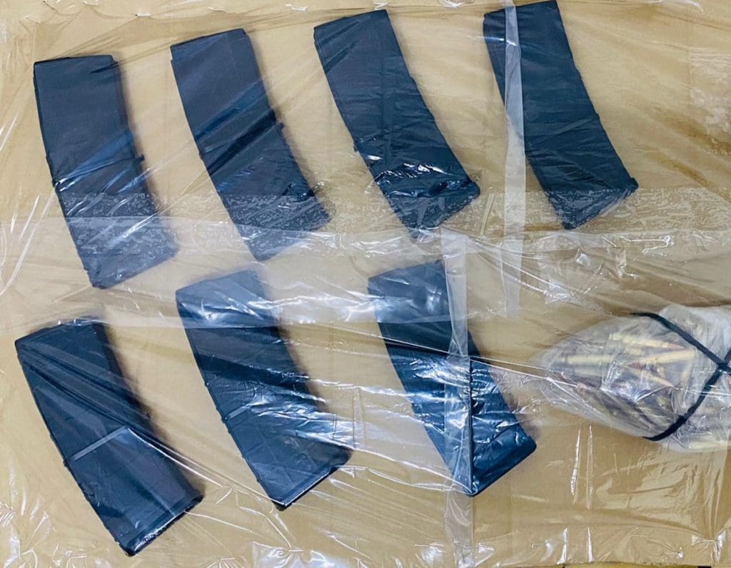 En el mismo sitio, encontraron siete cargadores para arma de fuego con 131 cartuchos y cuatro envoltorios con sustancias similares al narcótico.