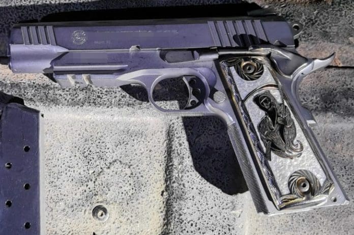 Durante operativos del fin de semana, la noche del sábado 11 de junio, agentes de la PESP atendieron el reporte del Ejército Mexicano de que, sobre la carretera internacional, aproximadamente en el kilómetro 171, en la parte posterior de una gasolinera, se encontró una mochila con un arma de fuego calibre .45mm con cargador y sin cartuchos.