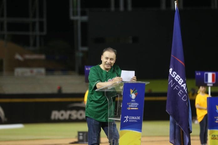 El mandatario estatal, junto a Ana Gabriela Guevara, directora de la Comisión Nacional de Cultura Física y Deporte (Conade) y de Erubiel Durazo, director de la Comisión del Deporte del Estado de Sonora (Codeson), dio la bienvenida a los jugadores de los 13 equipos que participarán en este mundial de béisbol.