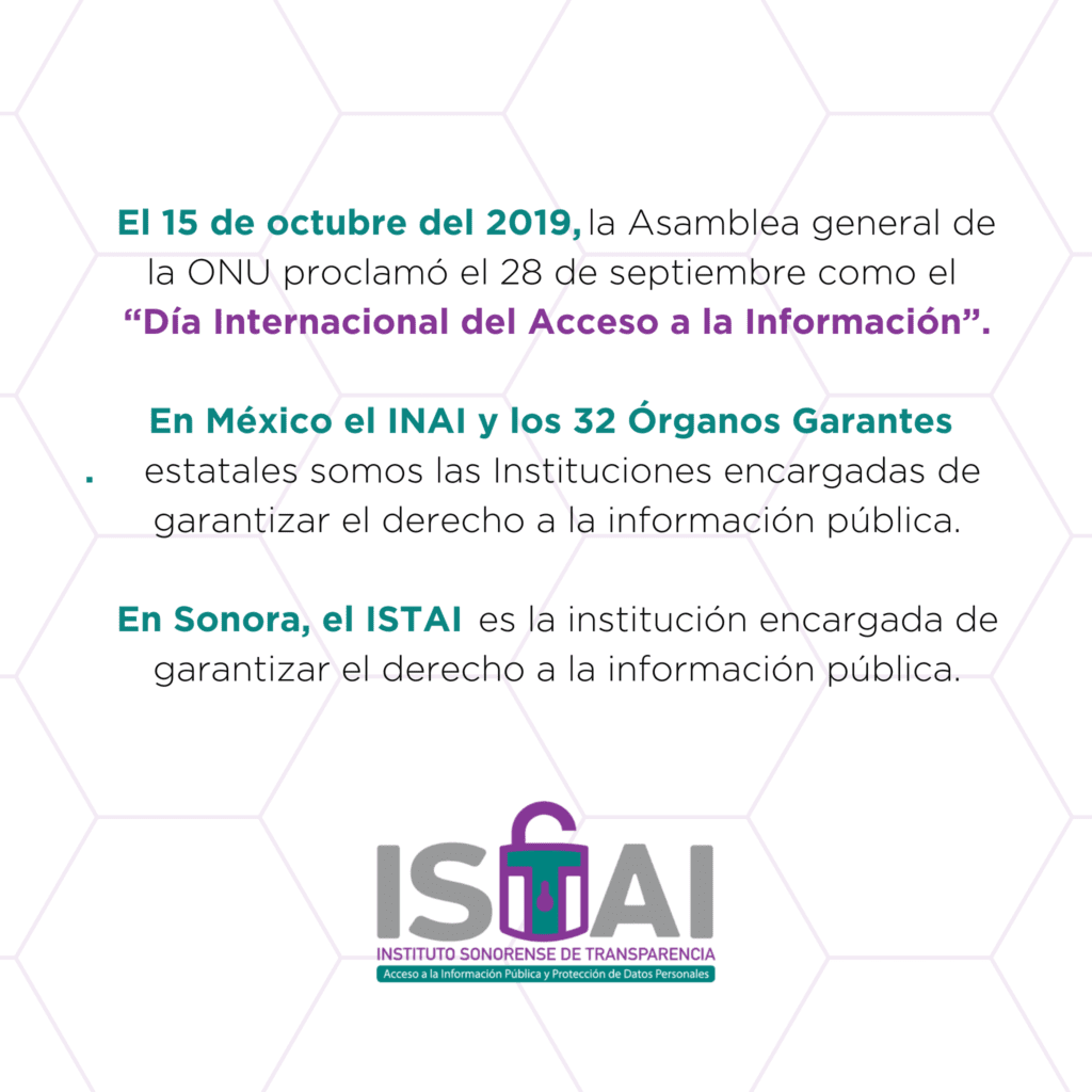En 2019, ONU declaró el 28 de septiembre como día internacional del acceso universal a la información. El transparenteSon cómo Órgano Garante en Sonora asume su compromiso de garantizar el acceso a la información pública y la Transparencia .