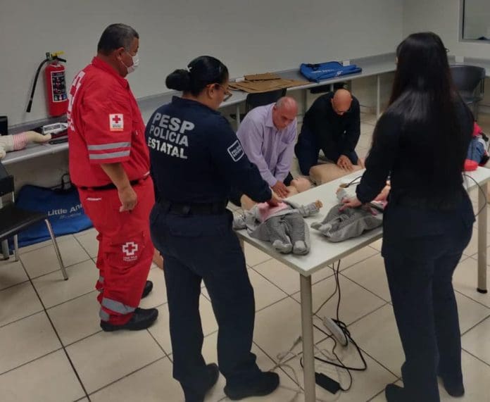 Para dar atención inmediata y salvar la vida ante una emergencia, la Policía Estatal de Seguridad Pública (PESP) recibió capacitación por personal de Cruz Roja en el tema “Primer respondiente en primeros auxilios”.