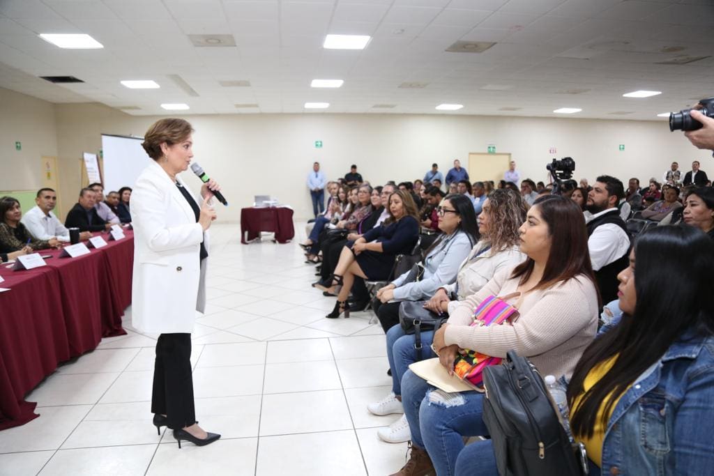 Durante el Encuentro Regional con la Estructura Educativa de Educación Básica en Caborca, María Dolores del Río Sánchez, secretaria de Seguridad Pública, acompañada por el secretario de Educación y Cultura, Aarón Grageda Bustamante, informó que es necesario unir voluntades con jefes de sector, supervisores y directores, como parte de la estrategia de seguridad.