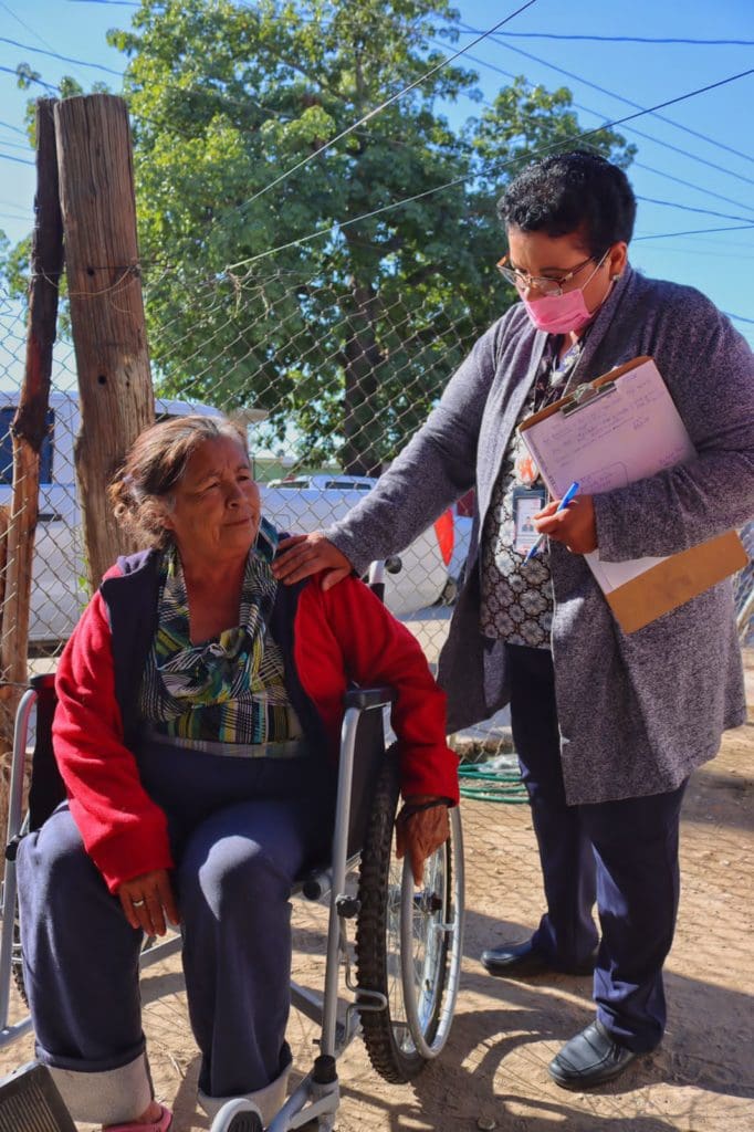 El Voluntariado de la Secretaría de Salud (SSA) entregó en donación una silla de ruedas nueva y paquetes de pañales a la señora Santos Trujillo Tánori, esto como parte del apoyo que requería por estar en una situación vulnerable.