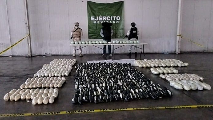 Gracias a trabajos de inteligencia realizados en coordinación por los tres niveles de gobierno, se logró el aseguramiento de más de 600 kilogramos de distintos narcóticos el pasado lunes.