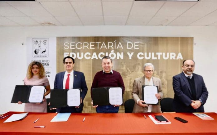El titular de la SEC agradeció la disposición de la casa de estudios por compartir su amplia experiencia académica y de investigación para contribuir en los esfuerzos que realiza el Gobierno de Sonora con el fin de recuperar los aprendizajes y profesionalizar al magisterio.