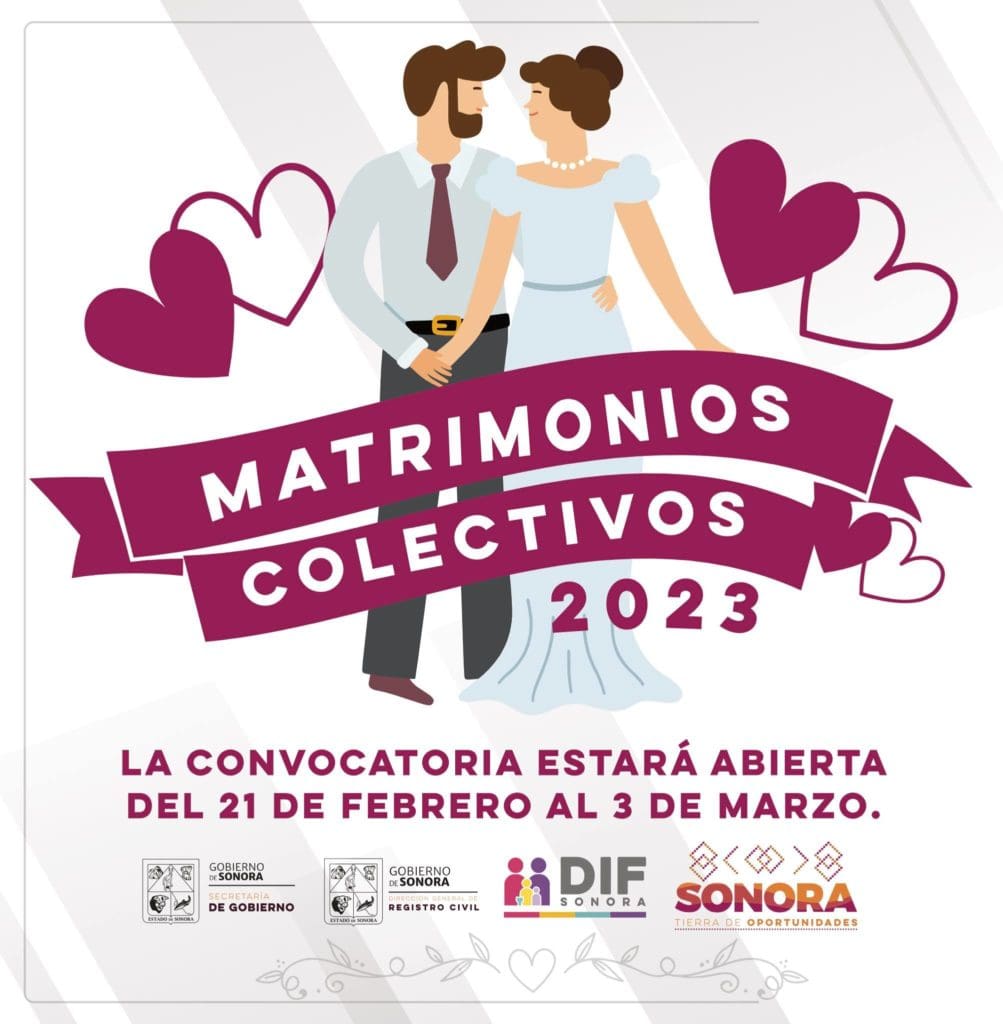 El Gobierno de Sonora, a través del Sistema para el Desarrollo Integral de la Familia (DIF Sonora) y Registro Civil, anunció el inicio de la convocatoria para matrimonios colectivos, la cual permanecerá abierta hasta el viernes 3 de marzo.