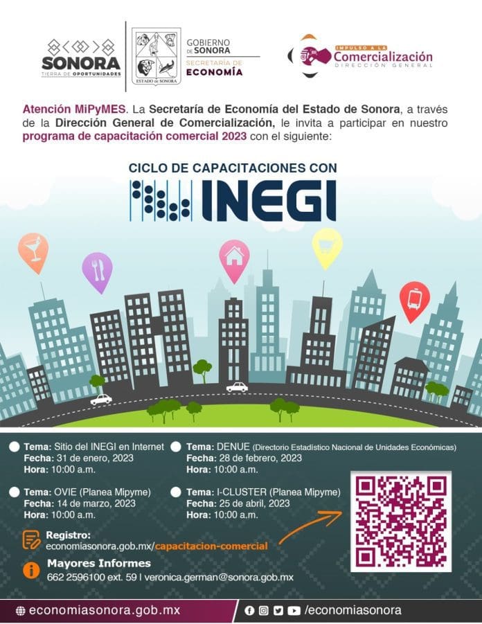 La capacitación será impartida por el equipo de atención a sectores público y social, dirigido por Gabriela Córdova Díaz, el próximo martes 25 de abril, a las 10:00 de la mañana; los interesados deberán registrarse a través del link https://economiasonora.gob.mx/capacitacion-comercial/