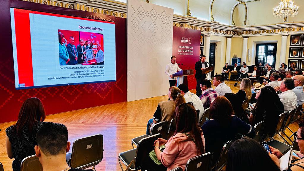 En el marco de la conferencia de prensa semanal del gobernador Alfonso Durazo Montaño, el secretario Educación y Cultura (SEC), Aarón Grageda Bustamante, informó que se llevarán a cabo 40 actividades como talleres, conferencias magistrales, paneles y se entregarán reconocimientos a docentes que han cumplido 20, 30 y 40 años de labor en el magisterio.