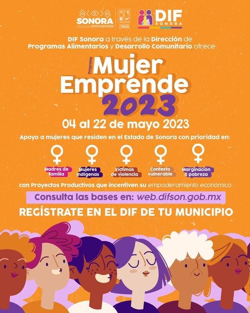 Es por esto que DIF Sonora, a través de la Dirección de programas alimentarios y Desarollo comunitario, abre la convocatoria 2023 del programa #MujerEmprende, con el cual se estará brindando acompañamiento, capacitación y el material necesario para emprender su propio negocio.