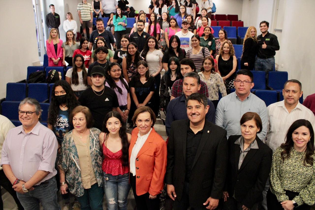 En un intercambio de ideas con las y los futuros profesionistas, María Dolores del Río, Secretaria de Seguridad, presento los programas, escuchó propuestas y comentarios, invitándolos a construir juntos una Cultura de la Paz.
