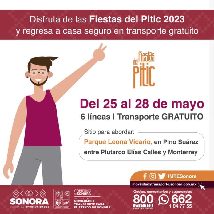 El Gobierno de Sonora activará seis líneas de transporte para brindar servicio gratuito de movilidad al término de las actividades nocturnas de las Fiestas del Pitic 2023, con traslados seguros en camiones hacia las colonias.