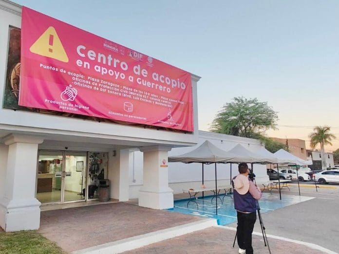 Por su parte, en conferencia de prensa, Adolfo Salazar Razo, secretario de Gobierno, añadió que se habilitaron las instalaciones en Hermosillo de DIF Sonora y Protección Civil, así como la Plaza Zaragoza, Plaza de los 100 años y Plaza Alonso Vidal, para que funcionen como centros de acopio y se puedan recibir alimentos no perecederos, artículos de higiene y artículos personales, además se tiene coordinación también con alcaldes y alcaldesas de los 72 municipios para la instalación de centros de acopio que sirvan para la recolección de víveres y se puedan enviar a Guerrero.