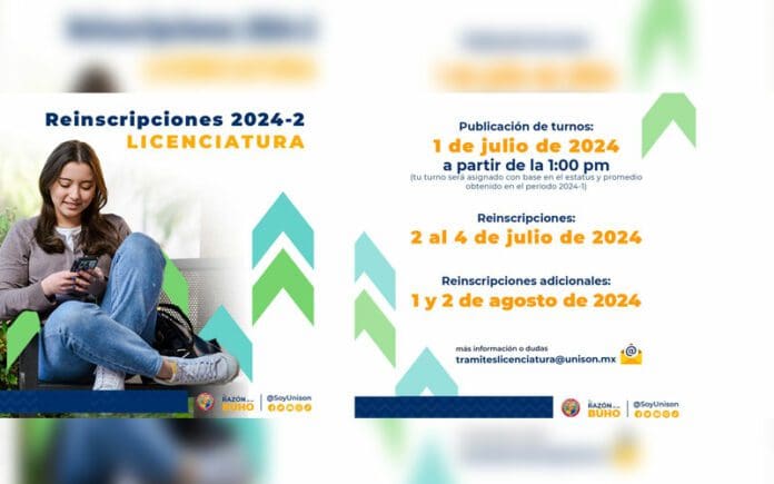 Durante la primera semana de julio, la Universidad de Sonora realiza el proceso de reinscripciones generales de licenciatura y posgrados, informó la directora de Servicios Escolares, Gema Karina Ibarra Torúa.